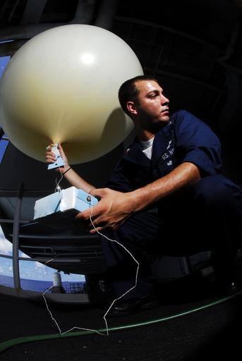 Keywords: US Navy 080709-N-7883G-031 Aerographer's Mate 2nd Class Kristopher Rodriguez, of Baltimore, prepares to release a weather balloon from the fantail of the aircraft carrier USS Kitty Hawk (CV 63).jpg en PACIFIC OCEAN July 9 2008 Aerographer's Mate 2nd Class Kristopher Rodriguez of Baltimore prepares to release a weather balloon from the fantail of the aircraft carrier USS Kitty Hawk CV 63 The radiosonde a radio transmitter attached to the balloon has sensors that measures meteorological variables such as wind temperature dew point and humidity sending this information to the observing station Kitty Hawk is participating in Rim of the Pacific RIMPAC 2008 Participants include units from the U S Australia Chile Japan the Netherlands Peru South Korea Singapore and the United Kingdom U S Navy photo by Mass Communication Specialist 3rd Class Kyle D Gahlau Released 2008-07-09 080709-N-7883G-031 Navy http //www navy mil/view_image asp id 61231 U S Navy photo by Mass Communication Specialist 3rd Class Kyle D Gahlau PD-USGov-Military-Navy Aboard USS Kitty Hawk CV-63 Aerographer's Mate Weather balloons |