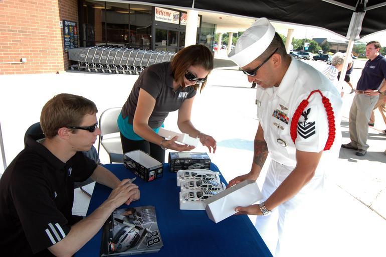 | Keywords: US Navy 080710-N-8848T-016 Aviation Maintenance Administrationman Shon Nuanez gives four die-cast No. 88 Navy Accelerate Your Life models to NASCAR Nationwide Series driver Brad Keselowski to autograph.jpg en NAVAL STATION GREAT LAKES Ill July 10 2008 Aviation Maintenance Administrationman Shon Nuanez gives four die-cast No 88 Navy Accelerate Your Life models to NASCAR Nationwide Series driver Brad Keselowski to autograph Keselowski the driver of the No 88 Monte Carlo SS met with and signed autographs for Sailors and their families in front of the Burkey Mall Navy Exchange to promote the Dale Earnhardt Jr Recruit Division which will be commissioned next month at Recruit Training Command U S Navy photo by Scott A Thornbloom Released 2008-07-10 080710-N-8848T-016 Navy http //www navy mil/view_image asp id 61429 U S Navy photo by Scott A Thornbloom PD-USGov-Military-Navy Naval Station Great Lakes Aviation Maintenance Administrationman Men with arm tattoos Navy Exchanges |