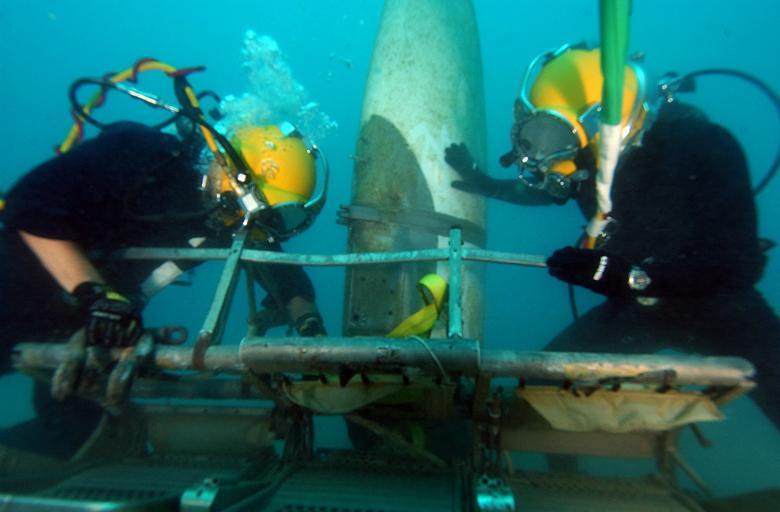 | Keywords: US Navy 080717-N-1974P-033 A U.S. Navy diver and an Australian Defense Forces diver secure wreckage to a shipboard crane during underwater salvage training near Pearl Harbor.jpg  en PEARL HARBOR Hawaii July 17 2008 A U S Navy diver assigned to Mobile Underwater Diving Salvage Unit MUDSU 1 and an Australian Defense Forces assigned to diver Clearance Diving Team AUSCDT 4 secure wreckage to a shipboard crane during underwater salvage training near Pearl Harbor This surface air-supplied dive is supported by the Military Sealift Command rescue and salvage ship USNS Salvor T-ARS 52 during the Rim of The Pacific 2008 exercise U S Navy photo by Mass Communication Specialist 2nd Class Walter Pels Released 2008-07-17 080717-N-1974P-033 Navy http //www navy mil/view_image asp id 61544 U S Navy photo PD-USGov-Military-Navy 2008 in Pearl Harbor Images from US Navy location Pearl Harbor Hawaii Underwater photographs of surface supplied divers Clearance Diving Team RAN Underwater salvage |