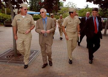 | Keywords: US Navy 080730-N-3236B-001 Rear Adm. Timothy M. Giardina, Deputy Secretary of Defense The Honorable Gordon England and Vice Adm. John J. Donnelly nter the Trident Training Facility.jpg en BANGOR Wash July 30 2008 Rear Adm Timothy M Giardina commander Submarine Group Trident Deputy Secretary of Defense The Honorable Gordon England and Vice Adm John J Donnelly commander Submarine Force enter the Trident Training Facility England held an all-hands call and emphasized the importance of strategic deterrence mission and the need for highly trained skilled and motivated Sailors in today's Navy U S Navy photo by Mass Communication Specialist 1st Class Ted Banks/Released 2008-07-30 080730-N-3236B-001 Navy http //www navy mil/view_image asp id 62122 U S Navy photo by Mass Communication Specialist 1st Class Ted Banks PD-USGov-Military-Navy Trident Training Facility Gordon R England |