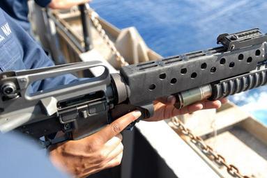 | Keywords: US Navy 080806-N-7730P-202 Aviation Electronic's Technician 3rd Class Awail Hassen loads a high explosive point detonated 40MM grenade round into an M203 grenade launcher.jpg en PACIFIC OCEAN Aug 6 2008 Aviation Electronic's Technician 3rd Class Awail Hassen loads a high explosive point detonated 40MM grenade round into an M203 grenade launcher during a live-fire exercise on the fantail of the Nimitz-class aircraft carrier USS Ronald Reagan CVN 76 The Ronald Reagan Carrier Strike Group is on a scheduled deployment in the 7th Fleet area of responsibility operating in the western Pacific and Indian oceans U S Navy photo by Mass Communication Specialist 3rd Class Gary Prill/Released 2008-08-06 080806-N-7730P-202 Navy http //www navy mil/view_image asp id 62295 U S Navy photo by Mass Communication Specialist 3rd Class Gary Prill PD-USGov-Military-Navy 40 mm grenade M16 rifle with M203 Males with M203 Firearms training on USS Ronald Reagan CVN-76 Aviation Electronics Technician |