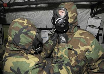 | Keywords: US Navy 080818-N-8275M-081 Seabees from the 30th Naval Construction Regiment (NCR) don their chemical, biological and radiological protective gear during a drill as part of Operation Bearing Duel 2008 in Fort Hunter Liggett.jpg en FORT HUNTER LIGGETT Calif Aug 18 2008 Seabees from the 30th Naval Construction Regiment NCR don their chemical biological and radiological protective gear during a drill as part of Operation Bearing Duel 2008 in Fort Hunter Liggett U S Navy photo by Chief Mass Communication Specialist Shane Montgomery/Released 2008-08-18 080818-N-8275M-081 Navy http //www navy mil/view_image asp id 63239 U S Navy photo by Chief Mass Communication Specialist Shane Montgomery PD-USGov-Military-Navy Fort Hunter Liggett Operation Bearing Duel 2008 Military protective clothing People wearing gas masks M40 Field Protective Mask |