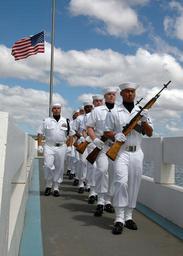 Keywords: US Navy 080819-N-7974M-002 Sailors render honors at a scattering of ashes ceremony for 89-year-old Pearl Harbor Survivor Major Wheeler, who was aboard the minesweeper USS Widgeon (AM 22) during the attack on Pearl Harbor.jpg en PEARL HARBOR Aug 19 2008 Sailors render honors at a scattering of ashes ceremony for 89-year-old Pearl Harbor Survivor Major Wheeler who was aboard the minesweeper USS Widgeon AM 22 during the attack on Pearl Harbor Wheeler requested his ashes to be scattered at the memorial on Ford Island near his fallen shipmates The ceremony included a religious service a three-volley rifle salute and a bugler sounding Taps Also in attendance was Wheeler's local church choir who sang the Navy Hymn U S Navy photo by Blair Martin/Released 2008-08-19 080819-N-7974M-002 Navy http //www navy mil/view_image asp id 62799 U S Navy photo by Blair Martin PD-USGov-Military-Navy USS Utah Memorial M14 rifle Gun salutes |