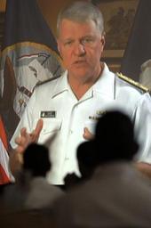 | Keywords: US Navy 080923-N-9818V-136 Chief of Naval Operations (CNO) Adm. Gary Roughead delivers a message to the participants of the second Global Maritime Senior Enlisted Sailor Symposium.jpg en HONOLULU Sept 23 2008 Chief of Naval Operations CNO Adm Gary Roughead delivers a message to the participants of the second Global Maritime Senior Enlisted Sailor Symposium The symposium hosted by Master Chief Petty Officer of the Navy MCPON Joe R Campa Jr and Master Chief Petty Officer of the Coast Guard Skip Bowen will focus on enlisted development and international cooperation Senior enlisted leaders representing forty nations are in Honolulu for the symposium U S Navy photo by Mass Communication Specialist 1st Class Jennifer A Villalovos/Released 2008-09-23 080923-N-9818V-136 Navy http //www navy mil/view_image asp id 64462 U S Navy photo by Mass Communication Specialist 1st Class Jennifer A Villalovos PD-USGov-Military-Navy Gary Roughead in 2008 Images from US Navy location HONOLULU |