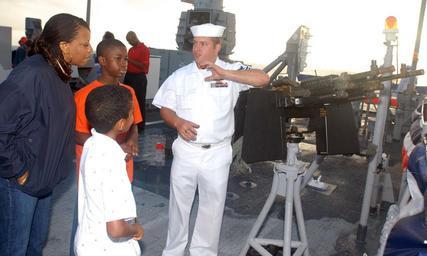 Keywords: US Navy 081010-N-0486G-001 Gunner's Mate 1st Class Jerry Hawk shows his gun mount and sea and anchor position to guests.jpg en JACKSONVILLE Fla Oct 10 2008 Gunner's Mate 1st Class Jerry Hawk shows his gun mount and sea and anchor position to guests aboard the guided-missile frigate USS Stephen W Groves FFG 29 Groves invited friends and family members for a family day cruise as they transited to downtown Jacksonville to participate in the Navy's birthday celebrations U S Navy photo by Mass Communication Specialist 2nd Class Daniel Gay/Released 2008-10-10 081010-N-0486G-001 Navy http //www navy mil/view_image asp id 65426 U S Navy photo by Mass Communication Specialist 2nd Class Daniel Gay PD-USGov-Military-Navy Images from US Navy location Jacksonville Florida USS Stephen W Groves FFG-29 Gunner's Mate |