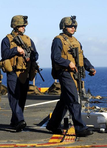 Keywords: US Navy 081104-N-4774B-402 Aviation Ordnanceman 3rd Class Erik Brown and Aviation Ordnanceman 3rd Class Randy Flores participate in small arms live-fire training.jpg en PACIFIC OCEAN Nov 4 2008 Aviation Ordnanceman 3rd Class Erik Brown and Aviation Ordnanceman 3rd Class Randy Flores participate in small arms live-fire training on the flight deck of the amphibious assault ship USS Boxer LHD 4 Boxer is underway in the Pacific Ocean preparing for a deployment scheduled for early next year U S Navy photo by Mass Communication Specialist 3rd Class Daniel Barker/Released 2008-11-04 081104-N-4774B-402 Navy http //www navy mil/view_image asp id 66163 U S Navy photo by Mass Communication Specialist 3rd Class Daniel Barker PD-USGov-Military-Navy Aviation Ordnanceman Aboard USS Boxer LHD-4 |
