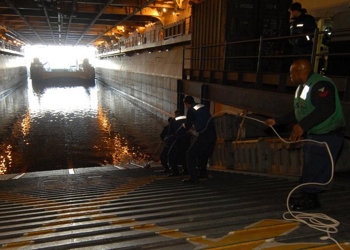 | Keywords: US Navy 090109-N-6282K-221 A landing craft air cushion embarks aboard USS Iwo Jima (LHD 7).jpg en PERSIAN GULF Jan 9 2009 Boatswain s Mates pull a landing craft air cushion from Assault Craft Unit ACU 4 into the well deck of the multi-purpose amphibious assault ship USS Iwo Jima LHD 7 during an emergency recovery drill Iwo Jima is deployed as part of the Iwo Jima Expeditionary Strike Group supporting maritime security operations in the U S 5th Fleet area of responsibility U S Navy photo by Mass Communication Specialist 3rd Class Bryant Kurowski/Released 2009-01-09 090109-N-6282K-221 Navy http //www navy mil/view_image asp id 67907 U S Navy photo by Mass Communication Specialist 3rd Class Bryant Kurowski PD-USGov-Military-Navy Aboard USS Iwo Jima LHD-7 Landing Craft Air Cushion Well decks |