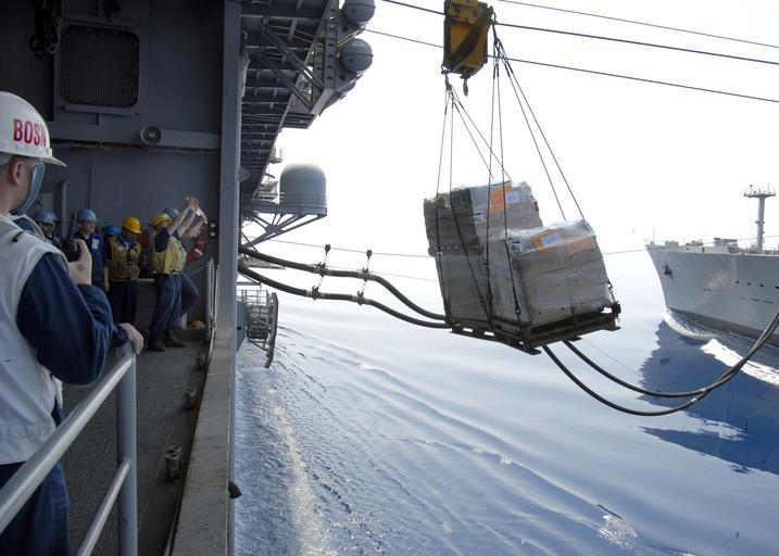 | Keywords: US Navy 090215-N-8283S-024 Sailors wait for pallets of supplies aboard USS Boxer (LHD 4).jpg en PACIFIC OCEAN Feb 15 2009 Sailors wait for pallets of supplies aboard the amphibious assault ship USS Boxer LHD 4 during an underway replenishment with the Military Sealift Command fleet replenishment oiler USNS Rappahannok T-AO 204 Boxer and the Boxer Expeditionary Strike Group/13th Marine Expeditionary Unit are on a scheduled deployment supporting global maritime security U S Navy photo by Mass Communication Specialist 2nd Class John J Siller/Released 2009-02-15 090215-N-8283S-024 Navy http //www navy mil/view_image asp id 69048 U S Navy photo by Mass Communication Specialist 2nd Class John J Siller PD-USGov-Military-Navy Aboard USS Boxer LHD-4 |