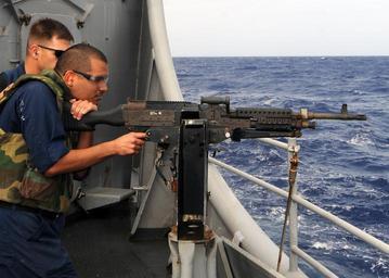 Keywords: US Navy 090319-N-1082Z-021 Chief Gunner's Mate David C. Brown monitors Ship's Serviceman 3rd Class Romulo Casavilca during an M240B machine gun qualification shoot aboard the guided-missile cruiser USS Vella Gulf (CG 72).jpg en ATLANTIC OCEAN March 19 2009 Chief Gunner's Mate David C Brown monitors Ship's Serviceman 3rd Class Romulo Casavilca during an M240B machine gun qualification shoot aboard the guided-missile cruiser USS Vella Gulf CG 72 Vella Gulf is deployed as part of the Iwo Jima Amphibious Ready Group supporting maritime security operations U S Navy photo by Mass Communication Specialist 2nd Class Jason R Zalasky/Released 2009-03-19 090319-N-1082Z-021 Navy http //www navy mil/view_image asp id 69856 U S Navy photo by Mass Communication Specialist 2nd Class Jason R Zalasky PD-USGov-Military-Navy Aboard USS Vella Gulf CG-72 FN MAG