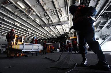 | Keywords: US Navy 090321-N-7364R-068 Deck and weapons department secure ordnance in the hangar bay of the aircraft carrier USS Harry S. Truman (CVN 75).jpg en ATLANTIC OCEAN March 21 2009 Deck and weapons department secure ordnance in the hangar bay of the aircraft carrier USS Harry S Truman CVN 75 during a weapons on-load Harry S Truman is conducting carrier qualifications in the Atlantic Ocean Photo by Mass Communication Specialist 2nd Class Felicito A Rustique Jr /Released 2009-03-21 090321-N-7364R-068 Navy http //www navy mil/view_image asp id 69888 U S Navy photo PD-USGov-Military-Navy Aboard USS Harry S Truman CVN-75 Ships' hangars |