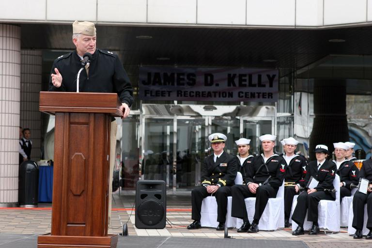 Keywords: US Navy 090324-N-1113S-003 Rear Adm. James D. Kelly speaks in front of the newest named building at Fleet Activities Yokosuka.jpg en YOKOSUKA Japan March 24 2009 Rear Adm James D Kelly speaks in front of the newest named building at Fleet Activities Yokosuka Members of the community gathered March 24 for a surprise dedication ceremony for the facility now named the James D Kelly Fleet Recreation Center Kelly currently Commander U S Naval Forces Japan is scheduled to retire from the Navy in July 2009 U S Navy photo by Mass Communication specialist 2nd Matthew Schwarz/Released 2009-03-24 090324-N-1113S-003 Navy http //www navy mil/view_image asp id 70000 U S Navy photo by Mass Communication specialist 2nd Matthew Schwarz PD-USGov-Military-Navy United States Fleet Activities Yokosuka James D Kelly |