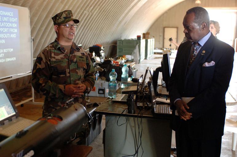 | Keywords: US Navy 090327-N-5242D-053 Chief Sonar Technician (Surface) Manny Ybarra briefs Ugandan officials and media on the sonar search by Explosive Ordnance Disposal Mobile Unit (EODMU) 8 during the recovery of a Soviet-era Ilyushin 7.jpg en ENTEBBE Uganda March 27 2009 Chief Sonar Technician Surface Manny Ybarra briefs Ugandan officials and media on the sonar search by Explosive Ordnance Disposal Mobile Unit EODMU 8 during the recovery of a Soviet-era Ilyushin 76 transport plane that crashed in Africa's Lake Victoria March 9 Ybarra and EODMU 8 are deployed from Naval Air Station Sigonella Italy as part of a search and recovery operation being conducted by Combined Joint Task Force-Horn of Africa and the government of Uganda U S Navy photo by Mass Communication Specialist 1st Cass Dustin Q Diaz/Released 2009-03-27 090327-N-5242D-053 Navy http //www navy mil/view_image asp id 70110 U S Navy photo by Mass Communication Specialist 1st Cass Dustin Q Diaz PD-USGov-Military-Navy March 2009 Lake Victoria plane crash Explosive Ordnance Disposal Mobile Unit 8 |