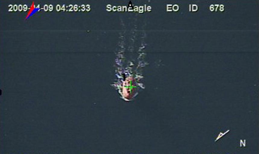 | Keywords: US Navy 090409-N-0000X-619 In a still frame from video taken by the Scan Eagle unmanned aerial vehicletaken by the Scan Eagle unmanned aerial vehicle, a 28-foot lifeboat from the U.S.-flagged container ship Maersk Alabama is s.jpg en INDIAN OCEAN April 9 2009 In a still frame from video taken by the Scan Eagle unmanned aerial vehicletaken by the Scan Eagle unmanned aerial vehicle a 28-foot lifeboat from the U S -flagged container ship Maersk Alabama is seen Thursday April 9 2009 in the Indian Ocean U S Navy Photo 2009-04-09 090409-N-0000X-619 Navy http //www navy mil/view_image asp id 70462 U S Navy photo PD-USGov-Military-Navy Indian Ocean Maersk Alabama lifeboat Still images from videos Photos and video from unmanned aerial vehicles |