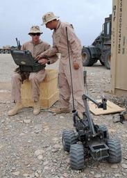| Keywords: US Navy 090413-N-8547M-010 Construction Electrician 2nd Class Ryan Moberly and Utilitiesman 3rd Class Jeffrey Schuett use a MARCbot IV during a familiarization exercise.jpg en HELMAND PROVINCE Afghanistan April 13 2009 Construction Electrician 2nd Class Ryan Moberly right and Utilitiesman 3rd Class Jeffrey Schuett both assigned to Naval Mobile Construction Battalion NMCB 5 Convoy Security Element use a MARCbot IV during a familiarization exercise Seabees use remote-control vehicles with mounted video cameras to investigate suspicious areas while on convoys in Southern Afghanistan NMCB-5 is one of the Naval Expeditionary Combat Command warfighting support elements providing host nation contingency construction support and security U S Navy photo by Mass Communication Specialist 2nd Class Patrick W Mullen III/Released 2009-04-13 090413-N-8547M-010 Navy http //www navy mil/view_image asp id 70751 U S Navy photo by Mass Communication Specialist 2nd Class Patrick W Mullen III PD-USGov-Military-Navy Helmand Province in the War in Afghanistan 2001-present Remote-controlled vehicles Construction Electrician United States Navy Utilitiesman Naval Mobile Construction Battalion 5 |