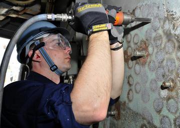 Keywords: US Navy 090415-N-2013O-017 Operations Specialist 1st Class Gary Yarbrough, from Springville, Ala., uses a needle gun to chip paint off a bulkhead aboard the Arleigh Burke-class guided-missile destroyer USS Lassen (DDG 82).jpg en YOKOSUKA Japan April 15 2009 Operations Specialist 1st Class Gary Yarbrough from Springville Ala uses a needle gun to chip paint off a bulkhead aboard the Arleigh Burke-class guided-missile destroyer USS Lassen DDG 82 Lassen is assigned to Destroyer Squadron 15 and is currently undergoing a scheduled dry dock ship's restricted availability U S Navy photo by Mass Communication Specialist Seaman Charles Oki/Released 2009-04-15 090415-N-2013O-017 Navy http //www navy mil/view_image asp id 70594 U S Navy photo by Mass Communication Specialist Seaman Charles Oki PD-USGov-Military-Navy United States Fleet Activities Yokosuka Aboard USS Lassen DDG-82 Needle scaler |