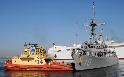 Keywords: US Navy 090417-N-0649J-002 Mine countermeasure ship USS Warrior (MCM 10) is pushed by tugboats as it arrives from its month-long transit from Ingleside, Texas to its new permanent duty station in accordance with the Defense Bas.jpg en SAN DIEGO April 17 2009 Mine countermeasure ship USS Warrior MCM 10 is pushed by tugboats as it arrives from its month-long transit from Ingleside Texas to its new permanent duty station in accordance with the Defense Base Relocation and Closure Commission U S Navy photo by Mass Communication Specialist 1st Class Krishna Jackson/Released 2009-04-17 090417-N-0649J-002 Navy http //www navy mil/view_image asp id 70759 U S Navy photo by Mass Communication Specialist 1st Class Krishna Jackson PD-USGov-Military-Navy Naval ship arrivals to Naval Base San Diego USS Warrior MCM-10 C-Tractor 14 ship 1999 Manning the rail in the United States Navy |