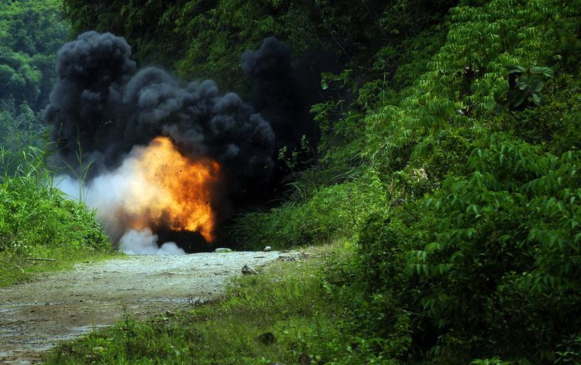 | Keywords: US Navy 090422-N-7130B-318 A fireball erupts as dynamite and TNT are used to clear boulders.jpg en PAGADIAN Philippines April 22 2009 A fireball erupts as dynamite and TNT are used to clear boulders during a road improvement project being conducted by members of the Joint Special Operations Task Force-Philippines Explosive Ordnance Disposal Task Unit and the Armed Forces of the Philippines Army The U S Explosive Ordnance Disposal Task Unit continually assists Philippine security forces by offering their counterparts technical assistance and information sharing U S Navy photo by Mass Communication Specialist 2nd Class Aaron Burden/Released 2009-04-22 090422-N-7130B-318 Navy http //www navy mil/view_image asp id 71415 U S Navy photo by Mass Communication Specialist 2nd Class Aaron Burden PD-USGov-Military-Navy Images from US Navy location PAGADIAN Philippines United States Navy Explosive Ordnance Disposal Explosions |