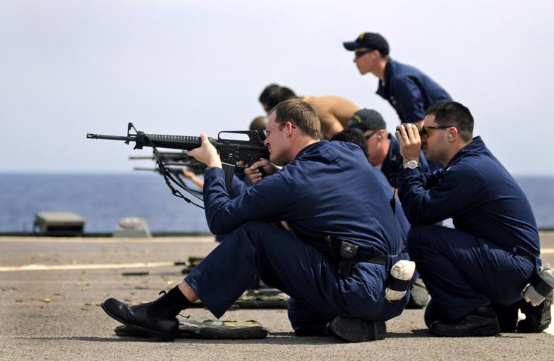 | Keywords: US Navy 090424-N-7280V-260 lectronics Technician 2nd Class Daniel Vogel aims at a target with an M16 assault rifle.jpg en PACIFIC OCEAN April 24 2009 Electronics Technician 2nd Class Daniel Vogel aims at a target with an M16 assault rifle aboard the amphibious command ship USS Blue Ridge LCC 19 as line coach Storekeeper 3rd Class Riad Taha observes U S Navy photo by Mass Communication Specialist 3rd Class Daniel Viramontes/Released 2009-04-24 090424-N-7280V-260 Navy http //www navy mil/view_image asp id 70998 U S Navy photo by Mass Communication Specialist 3rd Class Daniel Viramontes PD-USGov-Military-Navy Aboard USS Blue Ridge LCC-19 Males with M16 rifle |
