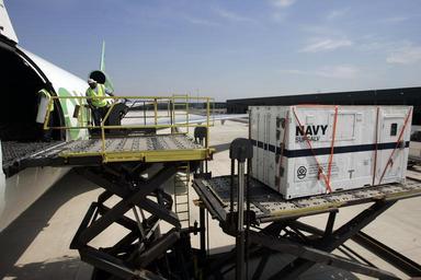 | Keywords: US Navy 090608-N-3404S-225 A Naval Sea Systems Command Supervisor of Salvage and Diving control van is loaded onto a transport aircraft June 8, 2009, for transportation to Brazil.jpg  en DULLES Va June 8 2009 A Naval Sea Systems Command Supervisor of Salvage and Diving control van is loaded onto a transport aircraft for transportation to Brazil U S Navy search equipment including an underwater pinger locator is being sent to help locate the flight data and cockpit voice recorders of an Air France passenger aircraft that went down in the Atlantic Ocean U S Navy photo by Oscar Sosa/Released 2009-06-08 090608-N-3404S-225 Navy http //www navy mil/view_image asp id 72429 U S Navy photo by Oscar Sosa PD-USGov-Military-Navy Aircraft at Washington Dulles International Airport McDonnell Douglas DC-10 Taken with Canon EOS-1D Mark II |