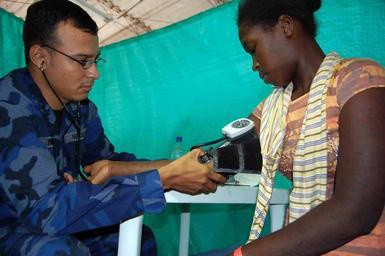 | Keywords: US Navy 090611-F-5647K-019 Lt Carlos Perez, a Nicaraguan navy doctor aboard hospital ship USNS Comfort (T-AH 20) checks a Colombian patient's blood pressure.jpg  en TUMACO Colombia June 11 2009 Lt Carlos Perez a Nicaraguan navy doctor aboard hospital ship USNS Comfort T-AH 20 checks a Colombian patient's blood pressure Comfort is deployed on the four-month Continuing Promise 2009 humanitarian and civic assistance mission to Latin America and the Caribbean region Continuing Promise combines U S military and interagency personnel non-governmental organizations civil service mariners academic and partner nations to provide medical dental veterinary and engineering services afloat and ashore alongside host nation personnel U S Air Force photo by Airman 1st Class Clara Karwacinski/Released 2009-06-11 090611-F-5647K-019 Navy http //www navy mil/view_image asp id 72660 U S Air Force photo by Airman 1st Class Clara Karwacinski PD-USGov-Military-Navy Images from US Navy location TUMACO Colombia Aboard USNS Comfort T-AH-20 |