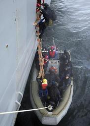 Keywords: US Navy 090615-N-5650M-265 Members of a Finnish boarding team board the amphibious command ship USS Mount Whitney (LCC 20) from a rigid hull inflatable boat during a visit, board search and seizure exercise.jpg en BALTIC SEA June 13 2009 Members of a Finnish boarding team board the amphibious command ship USS Mount Whitney LCC 20 from a rigid hull inflatable boat during a visit board search and seizure exercise This year is the 37th iteration of BALTOPS a series of exercises intended to improve interoperability with partner nations by conducting realistic training at sea with the 12 participating nations U S Navy photo by Mass Communication Specialist 3rd Class Christian T Martinez/Released 2009-06-13 090615-N-5650M-265 Navy http //www navy mil/view_image asp id 72774 U S Navy photo by Mass Communication Specialist 3rd Class Christian T Martinez PD-USGov-Military-Navy BALTOPS 2009 Aboard USS Mount Whitney LCC-20 Navy of Finland Boarding parties Rigid-hulled inflatable boats |