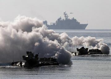 Keywords: US Navy 090701-N-1722M-094 Amphibious assault vehicles transporting U.S. Marines and soldiers from the Malaysian Army 9th Royal Malay Regiment pass the amphibious dock landing ship USS Harpers Ferry (LSD 49).jpg en TERENGGANU Malaysia July 1 2009 Amphibious assault vehicles transporting U S Marines and soldiers from the Malaysian Army 9th Royal Malay Regiment pass the amphibious dock landing ship USS Harpers Ferry LSD 49 as they lay a smoke screen during a combined amphibious landing exercise on the final day of Cooperation Afloat Readiness and Training CARAT Malaysia 2009 CARAT is a series of bilateral exercises held annually in Southeast Asia to strengthen relationships and enhance the operational readiness of the participating forces U S Navy photo by Mass Communication Specialist 1st Class Michael Moriatis/Released 2009-07-01 090701-N-1722M-094 Navy http //www navy mil/view_image asp id 73363 U S Navy photo by Mass Communication Specialist 1st Class Michael Moriatis PD-USGov-Military-Navy Images from US Navy location TERENGGANU Malaysia Amphibious Assault Vehicle Smoke screens Aboard USS Harpers Ferry LSD-49 |