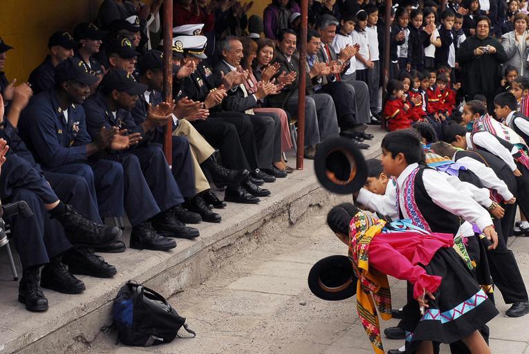 Keywords: US Navy 090710-N-7092S-491 Students from Escuela General Basica Centenario take a bow to Sailors from guided-missile frigate USS Kauffman (FFG 59) after performing a native folk dance during a community relations project in Ari.jpg en ARICA Chile July 10 2009 Students from Escuela General Basica Centenario take a bow to Sailors from guided-missile frigate USS Kauffman FFG 59 after performing a native folk dance during a community relations project in Arica Chile Kauffman is on a four-month deployment to Latin America and the Caribbean as part of Southern Seas 2009 in support of US SOUTHCOM Partnership of the Americas Southern Seas is a deployment that focuses on conducting exercises military to military engagements and theater security cooperation engagements to enhance relationships with Partner Nations in the Region U S Navy photo by Mass Communication Specialist 2nd Class Brandon Shelander/Released 2009-07-10 090710-N-7092S-491 Navy http //www navy mil/view_image asp id 73763 U S Navy photo by Mass Communication Specialist 2nd Class Brandon Shelander PD-USGov-Military-Navy People of Arica Southern Seas 2009 |