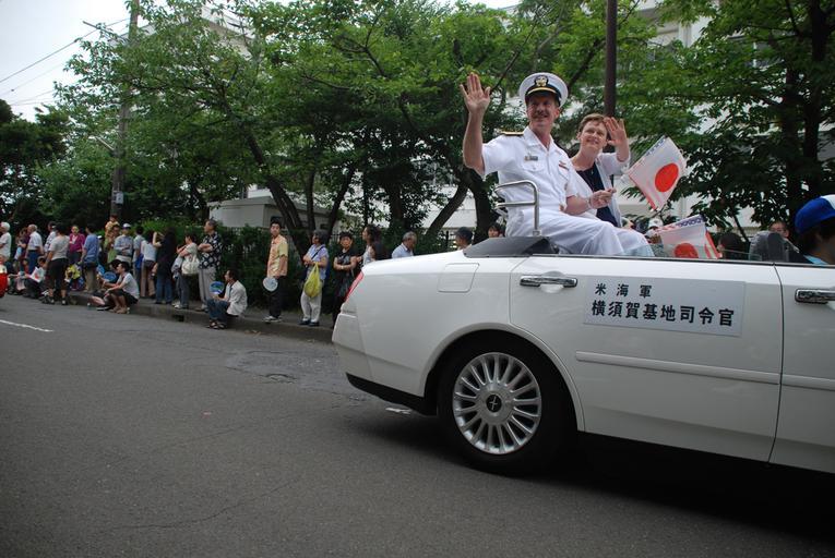 Keywords: US Navy 090712-N-3283P-081 Rear Adm. Richard B. Wren, commander, U.S. Naval Forces Japan and his wife wave to spectators during the Kurihama Perry Festival Parade in Yokosuka City.jpg en KURIHAMA Japan July 12 2009 Rear Adm Richard B Wren commander U S Naval Forces Japan and his wife wave to spectators during the Kurihama Perry Festival Parade in Yokosuka City The Kurihama Perry Festival commemorates the arrival of Commodore Matthew C Perry and his fleet of black ships at Uraga-bay U S Navy photo by Mass Communication Specialist Seaman Dominique Pineiro/Released 2009-07-12 090712-N-3283P-081 Navy http //www navy mil/view_image asp id 73823 U S Navy photo by Mass Communication Specialist Seaman Dominique Pineiro PD-USGov-Military-Navy Kurihama Perry Festival Kurihama Yokosuka |