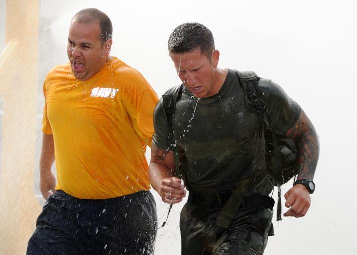 | Keywords: US Navy 090715-N-1424C-456 Equipment Operator 2nd Class Robert Bustos, left, motivates Construction Mechanic 2nd Class James Drolet as they run through a wash rack.jpg en CORONADO Calif JULY 15 2009 Equipment Operator 2nd Class Robert Bustos left motivates Construction Mechanic 2nd Class James Drolet as they run through a wash rack during the annual Captains Cup Ultimate Seabee competition Drolet has a 45-pound sandbag in his backpack The Ultimate Seabee challenge is one of 10 events that each of the four companies of Amphibious Construction Battalion ACB 1 Alfa Bravo Charlie and Headquarters Company compete in for points towards winning the Battalion trophy and the Captain's Cup pennant for the company guide-on U S Navy photo by Mass Communication Specialist 2nd Class Brian P Caracci/Released 2009-07-15 090715-N-1424C-456 Navy http //www navy mil/view_image asp id 74273 U S Navy photo by Mass Communication Specialist 2nd Class Brian P Caracci PD-USGov-Military-Navy Images from US Navy location CORONADO Calif Construction Mechanic United States Navy Equipment Operator United States Navy United States Navy Seabees Men with arm tattoos |