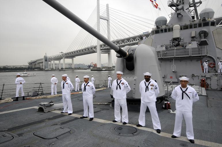 Keywords: US Navy 090721-N-3262C-069 Sailors aboard the guided-missile destroyer USS John S. McCain (DDG 56) man the rails as the ship passes under the Yokohama Bridge.jpg en YOKOHAMA Japan July 21 2009 Sailors aboard the guided-missile destroyer USS John S McCain DDG 56 man the rails as the ship passes under the Yokohama Bridge John S McCain made the transit from Yokosuka to Yokohama Japan as the first-ever U S Navy ship to participate in the annual celebration of the Yokohama port opening This year's celebration marks the 150th anniversary of the port being opened U S Navy photo by Mass Communication Specialist 2nd Class Josh Cassatt/Released 2009-07-21 090721-N-3262C-069 Navy http //www navy mil/view_image asp id 74280 U S Navy photo by Mass Communication Specialist 2nd Class Josh Cassatt <gallery> File US Navy 090721-N-3283P-231 Sailors aboard the guided-missile destroyer USS John S McCain DDG 56 man the rails as the ship passes under the Yokohama Bridge jpg 090721-N-3283P-231 </gallery> PD-USGov-Military-Navy Personality rights Taken with Nikon D300 Images from US Navy location Tokyo Bay Japan Images from US Navy location Yokohama Japan Manning the rail in the United States Navy 5 /54 caliber Mark 45 gun Yokohama Bay Bridge USS John S McCain DDG-56 in Yokohama Military people in 2009