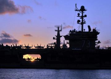 | Keywords: US Navy 090724-N-1644H-129 The aircraft carrier USS George Washington (CVN 73) is silhouetted as it transits the western Pacific Ocean at sunrise.jpg en PACIFIC OCEAN July 24 2009 The aircraft carrier USS George Washington CVN 73 is silhouetted as it transits the western Pacific Ocean at sunrise George Washington is participating in Talisman Saber 09 a biennial combined exercise designed to train Australian and U S forces in planning and conducting combined operations U S Navy photo by Mass Communication Specialist 1st Class John M Hageman/Released 2009-07-24 090724-N-1644H-129 Navy http //www navy mil/view_image asp id 74449 U S Navy photo by Mass Communication Specialist 1st Class John M Hageman PD-USGov-Military-Navy Aboard USS George Washington CVN-73 Talisman Sabre 2009 |