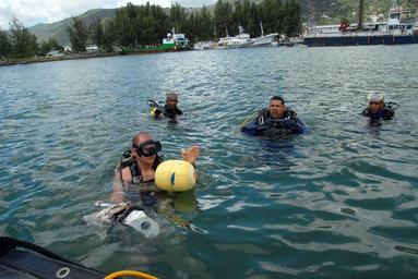 | Keywords: US Navy 090812-N-5710P-181 U.S. Navy Diver 2nd Class Preston Kopcsik confirms his initial direction of movement before taking Seychelles Coast Guard divers.jpg  en PORT VICTORIA Aug 12 2009 U S Navy Diver 2nd Class Preston Kopcsik confirms his initial direction of movement before taking Seychelles Coast Guard divers on a 2 Alpha training dive as part of operation Island Response'09 Island Response'09 is a bilateral exercise between the U S Navy and the Seychelles Coast Guard to strengthen military relations and tactical proficiency in anti-terrorism force protection diving operations underwater search techniques dive medicine fundamentals underwater salvage fundamentals diving supervisor training and diving equipment maintenance procedures U S Navy photo by Mass Communication Specialist 1st Class Joseph W Pfaff/Released 2009-08-12 090812-N-5710P-181 Navy http //www navy mil/view_image asp id 75173 U S Navy photo by Mass Communication Specialist 1st Class Joseph W Pfaff PD-USGov-Military-Navy Images from US Navy location PORT VICTORIA Seychelles United States Navy Divers |