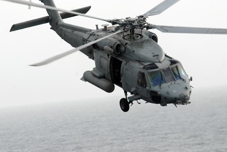 Keywords: US Navy 090820-N-5586R-024 An MH-60S Sea Hawk helicopter assigned to the Blackjacks of Helicopter Sea Combat Squadron (HSC) 21 maneuvers between the Military Sealift Command fast-combat support ship USNS Rainier (T-AOE 7) and t.jpg en GULF OF OMAN Aug 20 2009 An HH-60H Sea Hawk helicopter assigned to the Black Knights of Helicopter Anti-Submarine Squadron HS 4 maneuvers between the Military Sealift Command fast-combat support ship USNS Rainier T-AOE 7 and the aircraft carrier USS Ronald Reagan CVN 76 during a replenishment at sea The Sea Hawk is used for logistics support vertical replenishment search and rescue and naval special warfare support Ronald Reagan is deployed to the U S 5th Fleet area of responsibility U S Navy photo by Mass Communication Specialist Seaman Apprentice Amanda L Ray/Released 2009-08-20 090820-N-5586R-024 Navy http //www navy mil/view_image asp id 75560 U S Navy photo by Mass Communication Specialist Seaman Apprentice Amanda L Ray PD-USGov-Military-Navy Helicopters at USS Ronald Reagan CVN-76 HH-60H Rescue Hawk Helicopter Sea Combat Squadron 4 United States Navy Helicopter Sea Combat Squadron 21 United States Navy