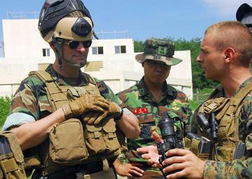 Keywords: US Navy 090823-N-9573A-028 Lance Cpl. Tom Canzano, right, of Farmington, N.Y., assigned to Fleet Anti-terrorism Security Team Pacific (FAST PAC), explains to Vice Adm. John M. Bird, left, commander, U.S. 7th Fleet.jpg en CAMP MUJUK Republic of Korea Aug 23 2009 Lance Cpl Tom Canzano right of Farmington N Y assigned to Fleet Anti-terrorism Security Team Pacific FAST PAC explains to Vice Adm John M Bird left commander U S 7th Fleet the characteristics of his enhanced marksmanship rifle scope Marines from FAST PAC are conducting advanced urban combat training with the Republic of Korea Marine Corps to improve interoperability U S Navy photo by Mass Communication Specialist 1st Class Bobbie G Attaway/Released 2009-08-23 090823-N-9573A-028 Navy http //www navy mil/view_image asp id 75480 U S Navy photo by Mass Communication Specialist 1st Class Bobbie G Attaway PD-USGov-Military-Navy Images from US Navy location CAMP MUJUK Republic of Korea John M Bird Fleet Antiterrorism Security Team |