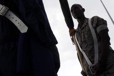 | Keywords: US Navy 091009-N-3830J-088 Cpl. Glenn Hughes from Fleet Anti-terrorism Security Team Pacific Company, 5th Platoon practices honor guard routine with Sailors assign to the amphibious command ship USS Blue Ridge (LCC 19).jpg en PACIFIC OCEAN Oct 9 2009 Cpl Glenn Hughes from Fleet Anti-terrorism Security Team Pacific Company 5th Platoon practices honor guard routine with Sailors assign to the amphibious command ship USS Blue Ridge LCC 19 and embarked 7th Fleet Blue Ridge is the flagship for Commander U S 7th Fleet U S Navy photo by Mass Communication Specialist 3rd Class Matthew D Jordan/Released 2009-10-09 091009-N-3830J-088 Navy http //www navy mil/view_image asp id 76996 U S Navy photo by Mass Communication Specialist 3rd Class Matthew D Jordan PD-USGov-Military-Navy Aboard USS Blue Ridge LCC-19 Fleet Antiterrorism Security Team |