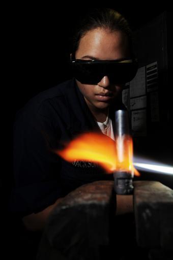 | Keywords: US Navy 091017-N-3038W-074 Hull Technician Fireman Gillian Jackson brazes a pipe in the welding shop aboard the aircraft carrier USS Nimitz (CVN 68).jpg en INDIAN OCEAN Oct 17 2009 Hull Technician Fireman Gillian Jackson brazes a pipe in the welding shop aboard the aircraft carrier USS Nimitz CVN 68 The Nimitz Carrier Strike Group is on a routine deployment to the U S 5th Fleet area of responsibility U S Navy photo by Mass Communication Specialist 3rd Class John Phillip Wagner Jr /Released 2009-10-17 091017-N-3038W-074 Navy http //www navy mil/view_image asp id 77405 U S Navy photo by Mass Communication Specialist 3rd Class John Phillip Wagner Jr PD-USGov-Military-Navy Brazing Aboard USS Nimitz CVN-68 |