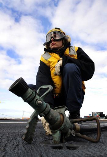 | Keywords: US Navy 091104-N-9928E-111 Airman Jared Blassett, from Springfield, Ill., mans a fire hose during drills aboard the aircraft carrier USS John C. Stennis (CVN 74).jpg en PACIFIC OCEAN Nov 4 2009 Airman Jared Blassett from Springfield Ill mans a fire hose during drills aboard the aircraft carrier USS John C Stennis CVN 74 John C Stennis is in transit to Southern California to participate in a strike group sustainment exercise U S Navy photo by Mass Communication Specialist 3rd Class Josue L Escobosa/Released 2009-11-04 091104-N-9928E-111 Navy http //www navy mil/view_image asp id 78105 U S Navy photo by Mass Communication Specialist 3rd Class Josue L Escobosa PD-USGov-Military-Navy Aboard USS John C Stennis CVN-74 |