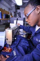 Keywords: US Navy 091110-N-6003P-008 Seaman Danielle Overstreet stitches a USS Harry S. Truman.jpg en ATLANTIC OCEAN Nov 10 2009 Seaman Danielle Overstreet stitches a USS Harry S Truman Give 'Em Hell battle flag patch on a set of coveralls aboard the aircraft carrier USS Harry S Truman CVN 75 Harry S Truman is underway conducting carrier qualifications U S Navy photo by Mass Communication Specialist 3rd Class Kilho Park/Released 2009-11-10 091110-N-6003P-008 Navy http //www navy mil/view_image asp id 78439 U S Navy photo by Mass Communication Specialist 3rd Class Kilho Park PD-USGov-Military-Navy Aboard USS Harry S Truman CVN-75 Overalls