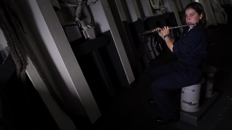 Keywords: US Navy 091113-N-3830J-135 Musician Seaman Danielle Clark, a member of the U.S. 7th Fleet Band, practices the flute in the aft mooring station of the amphibious command ship USS Blue Ridge (LCC 19).jpg en PACIFIC OCEAN Nov 13 2009 Musician Seaman Danielle Clark a member of the U S 7th Fleet Band practices the flute in the aft mooring station of the amphibious command ship USS Blue Ridge LCC 19 U S Navy photo by Mass Communication Specialist 3rd Class Matthew D Jordan/Released 2009-11-13 091113-N-3830J-135 Navy http //www navy mil/view_image asp id 78456 U S Navy photo by Mass Communication Specialist 3rd Class Matthew D Jordan PD-USGov-Military-Navy Military music of the United States Aboard USS Blue Ridge LCC-19 |