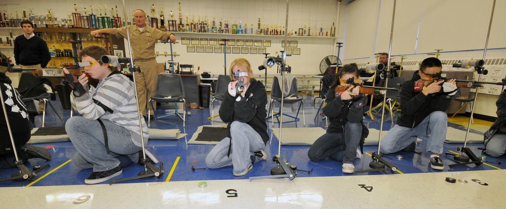 | Keywords: US Navy 100121-N-8848T-640 Navy Junior ROTC cadets from Zion-Benton High School practice shooting at the school's air rifle range.jpg en ZION Ill Jan 23 2010 Navy Junior ROTC cadets from Zion-Benton High School practice shooting at the school's air rifle range In 2009 the team won first place at the Junior Olympics took first at the U S Army Nationals came in third at the U S Navy Nationals and is presently ranked No 1 heading into this year's Navy Nationals in March U S Navy photo by Scott A Thornbloom/Released 2010-01-23 100121-N-8848T-640 Navy http //www navy mil/view_image asp id 80994 U S Navy photo by Scott A Thornbloom PD-USGov-Military-Navy Images from US Navy location ZION Ill |