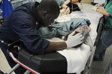 | Keywords: US Navy 100126-N-4995K-093 Quartermaster 2nd Class Edder Bazne, a translator aboard the Military Sealift Command hospital ship USNS Comfort (T-AH 20), consoles a 12-year-old girl in the Comfort post operation ward.jpg en PORT-AU-PRINCE Haiti Jan 26 2010 Quartermaster 2nd Class Edder Bazne a translator aboard the Military Sealift Command hospital ship USNS Comfort T-AH 20 consoles a 12-year-old girl in the Comfort post operation ward Comfort has treated more than 500 patients and preformed more than 100 surgeries since arriving in Haiti The U S Navy is working with multinational forces to help the people of Haiti recover and rebuild after an earthquake struck the Caribbean nation on Jan 12 U S Navy photo by Mass Communication Specialist 2nd Class Chelsea Kennedy/Released 2010-01-26 100126-N-4995K-093 Navy http //www navy mil/view_image asp id 80979 U S Navy photo by Mass Communication Specialist 2nd Class Chelsea Kennedy PD-USGov-Military-Navy 2010 Haiti earthquake relief efforts in Port-au-Prince USNS Comfort in Haiti 2010 12-year-old human females African American men Girls of Haiti Female black hair Male black hair |