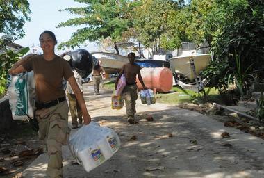 MAKE A MEME View Large Image Navy 100127-N-1831S-110 Gunner's Mate 3rd Class Kristen Luna, assigned to Beach Master Unit (BMU) 2, carries baby supplies to the Killick Haitian Coast Guard Base during a humanitarian supply delivery.jpg en KILLICK Haiti Jan 27 2010 ...