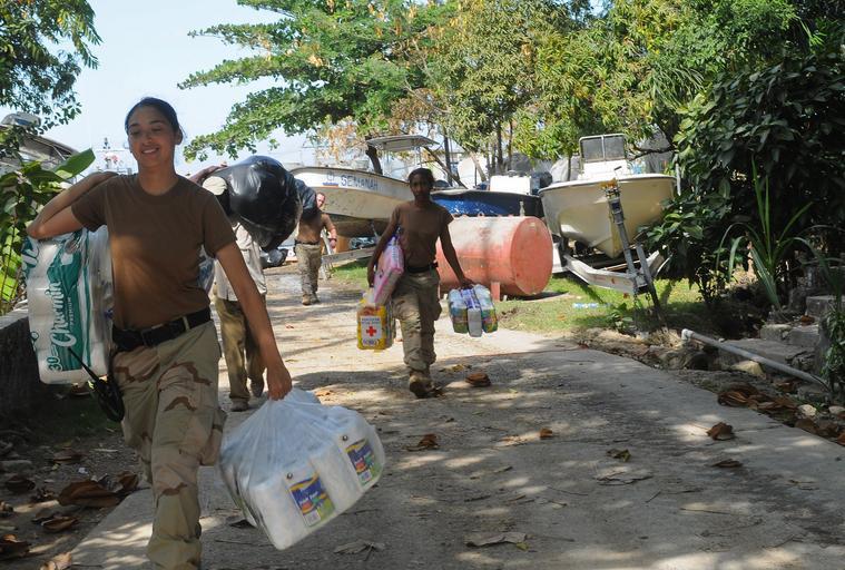 Keywords: US Navy 100127-N-1831S-110 Gunner's Mate 3rd Class Kristen Luna, assigned to Beach Master Unit (BMU) 2, carries baby supplies to the Killick Haitian Coast Guard Base during a humanitarian supply delivery.jpg en KILLICK Haiti Jan 27 2010 Gunner's Mate 3rd Class Kristen Luna assigned to Beach Master Unit BMU 2 carries baby supplies to the Killick Haitian Coast Guard Base during a humanitarian supply delivery BMU-2 is embarked aboard the amphibious dock landing ship USS Gunston Hall LSD 44 Gunston Hall is supporting Operation Unified Response following a 7 0 magnitude earthquake that caused severe damage in Haiti on Jan 12 U S Navy photo by Mass Communication Specialist 3rd Class Ash Severe/Release 2010-01-27 100127-N-1831S-110 Navy http //www navy mil/view_image asp id 81278 U S Navy photo PD-USGov-Military-Navy Aboard USS Gunston Hall LSD-44 Gunner's Mate