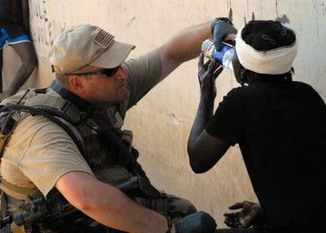 | Keywords: US Navy 100202-N-4971L-132 Sailor provides first aid to Haitian woman.jpg  en BIREY Haiti Feb 2 2010 Chief Warrant Officer Jason Taggart from Wallsville Ohio provides first aid to a Haitian woman at a distribution point Fort McHenry is participating in Operation Unified Response as part of the Bataan Amphibious Relief Mission in Haiti following a 7 0 magnitude earthquake Jan 12 Official U S Navy photo by Mass Communication Specialist 1st Class Rachael L Leslie/Released 2010-02-02 100202-N-4971L-132 Navy http //www navy mil/view_image asp id 81473 U S Navy photo PD-USGov-Military-Navy Images from US Navy location BIREY Haiti First aid treatment |