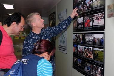 | Keywords: US Navy 100218-N-4995K-029 Capt. James Ware shares some of the ship's history with Ever Muillo and Luz Amanda Pulido aboard USNS Comfort (T-AH 20).jpg  en HAITI Feb 18 2010 Capt James Ware commanding officer of the medical treatment facility aboard the Military Sealift Command hospital ship USNS Comfort T-AH 20 shares some of the ship's history with Ever Muillo Colombian director of social action and Luz Amanda Pulido Colombian director of risk management Comfort is working with U S agencies in coordination with the Government of Haiti the United Nations the international community and voluntary organizations to provide humanitarian assistance following the earthquake that devastated Port-au-Prince and the surrounding countryside Jan 12 U S Navy photo by Mass Communication Specialist 2nd Class Chelsea Kennedy/Released 2010-02-18 100218-N-4995K-029 Navy http //www navy mil/view_image asp id 82092 U S Navy photo by Mass Communication Specialist 2nd Class Chelsea Kennedy PD-USGov-Military-Navy Aboard USNS Comfort T-AH-20 United States Navy images from Haiti |