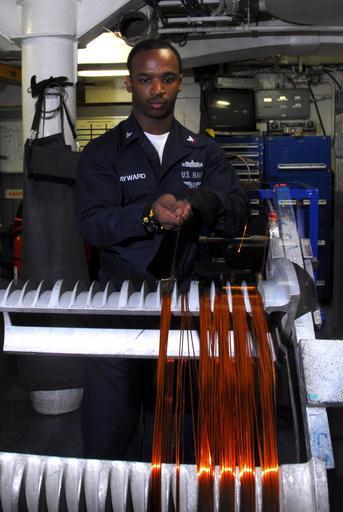 Keywords: US Navy 100302-N-3327M-012 Electrician's Mate 3rd Class Tyreek Hayward winds copper wire for a ventilation motor during maintenance aboard the aircraft carrier USS Nimitz (CVN 68).jpg en SEA OF JAPAN March 2 2010 Electrician's Mate 3rd Class Tyreek Hayward winds copper wire for a ventilation motor during maintenance aboard the aircraft carrier USS Nimitz CVN 68 The Nimitz Carrier Strike Group is conducting operations in the U S 7th Fleet area of responsibility U S Navy photo by Mass Communication Specialist 3rd Class James Mitchell/Released 2010-03-02 100302-N-3327M-012 Navy http //www navy mil/view_image asp id 82655 U S Navy photo by Mass Communication Specialist 3rd Class James Mitchell PD-USGov-Military-Navy Aboard USS Nimitz CVN-68 Electrician's Mate |