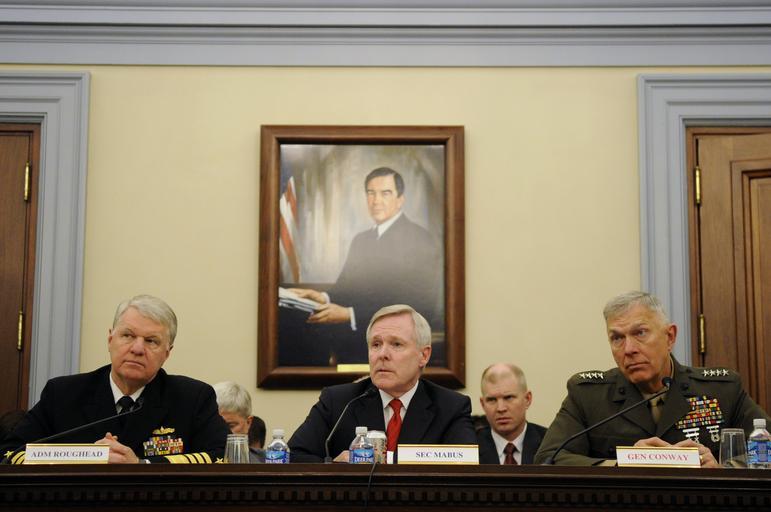 | Keywords: US Navy 100311-N-5549O-059 Chief of Naval Operations (CNO) Adm. Gary Roughead, Secretary of the Navy (SECNAV) the Honorable Ray Mabus and Commandant of the Marine Corps Gen. James T. Conway deliver testimony.jpg en WASHINGTON Mar 11 2010 Chief of Naval Operations CNO Adm Gary Roughead Secretary of the Navy SECNAV the Honorable Ray Mabus and Commandant of the Marine Corps Gen James T Conway deliver testimony and answer questions from members of the House Appropriations Committee on Defense regarding the Fiscal Year 2011 Department of the Navy Budget Overview U S Navy photo by Mass Communication Specialist 2nd Class Kevin S O'Brien/Released 2010-03-11 100311-N-5549O-059 Navy http //www navy mil/view_image asp id 83064 U S Navy photo by Mass Communication Specialist 2nd Class Kevin S O'Brien PD-USGov-Military-Navy Military in Washington D C Gary Roughead in 2010 James T Conway Ray Mabus Gary Roughead in 2011 Testimony |