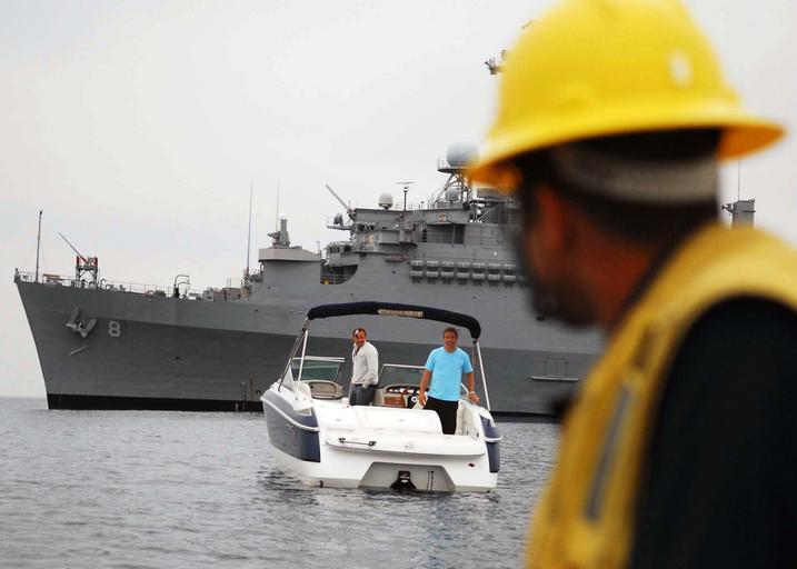 Keywords: US Navy 100425-N-9706M-003 The amphibious transport dock ship USS Dubuque (LPD 8) and five crewmen in one of the ship's boats assist two recreational boaters off the coast of California.jpg en PACIFIC OCEAN April 25 2010 The amphibious transport dock ship USS Dubuque LPD 8 and five crewmen in one of the ship's boats assist two recreational boaters off the coast of California The boaters were on their way from Avalon to Newport Beach Calif when they ran out of fuel The ship's crew assessed the condition of the crew and boat and provided the boaters with fuel A Coast Guard vessel later guided the boat to Newport Beach Dubuque and the Peleliu Amphibious Ready Group are completing a certification exercise with the embarked 15th Marine Expeditionary Unit 15th MEU before a deployment later this spring U S Navy photo by Mass Communication Specialist Class David McKee/Released 2010-04-25 100425-N-9706M-003 Navy http //www navy mil/view_image asp id 84649 U S Navy photo by Mass Communication Specialist Class David McKee PD-USGov-Military-Navy USS Dubuque LPD-8 Boats in California Dubuque 2010 in California |