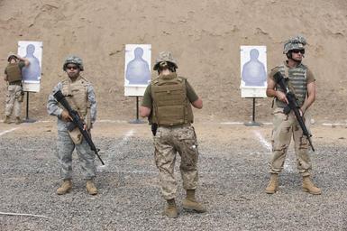 | Keywords: US Navy 100512-N-7526R-096 Service face away from their targets as a member of the range safety team fixes a target during a U.S. Marine Corps Enhanced Marksmanship range evolution.jpg en DJIBOUTI May 12 2010 Airman 1st Class Alex Rodriguez left and Chief Operations Specialist Richard McCullough right both assigned to Combined Joint Task Force-Horn of Africa face away from their targets as a member of the range safety team fixes a target during a U S Marine Corps Enhanced Marksmanship range evolution at the Djibouti City Police Department gun range Nearly 20 military members deployed to Camp Lemonnier Djibouti participated in the exercise which focuses on advanced tactical weapons training U S Navy photo by Mass Communication Specialist 2nd Class Marc Rockwell-Pate/Released 2010-05-12 100512-N-7526R-096 Navy http //www navy mil/view_image asp id 85417 U S Navy photo by Mass Communication Specialist 2nd Class Marc Rockwell-Pate PD-USGov-Military-Navy United States Navy images from Djibouti Males with M16 rifle Body armor Military camouflage clothing MARPAT in 2010 Army Combat Uniform in 2010 Women in the United States Marine Corps |