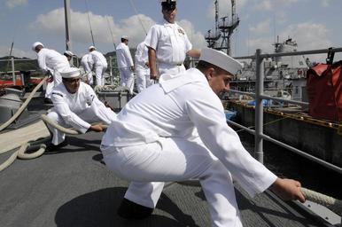 Keywords: US Navy 100512-N-8335D-157 Sailors heave on mooring lines as the mine countermeasures ship USS Patriot (MCM 7) arrives in Sasebo, Japan at the end of its spring patrol.jpg en SASEBO Japan May 12 2010 Sailors heave on mooring lines as the mine countermeasures ship USS Patriot MCM 7 arrives in Sasebo Japan at the end of its spring patrol Patriot was underway for nearly four-months visiting 10 ports in eight countries and traveling 10 360 nautical miles U S Navy photo by Mass Communication Specialist 1st Class Richard Doolin/Released 2010-05-12 100512-N-8335D-157 Navy http //www navy mil/view_image asp id 85377 U S Navy photo by Mass Communication Specialist 1st Class Richard Doolin PD-USGov-Military-Navy USS Patriot MCM-7 |